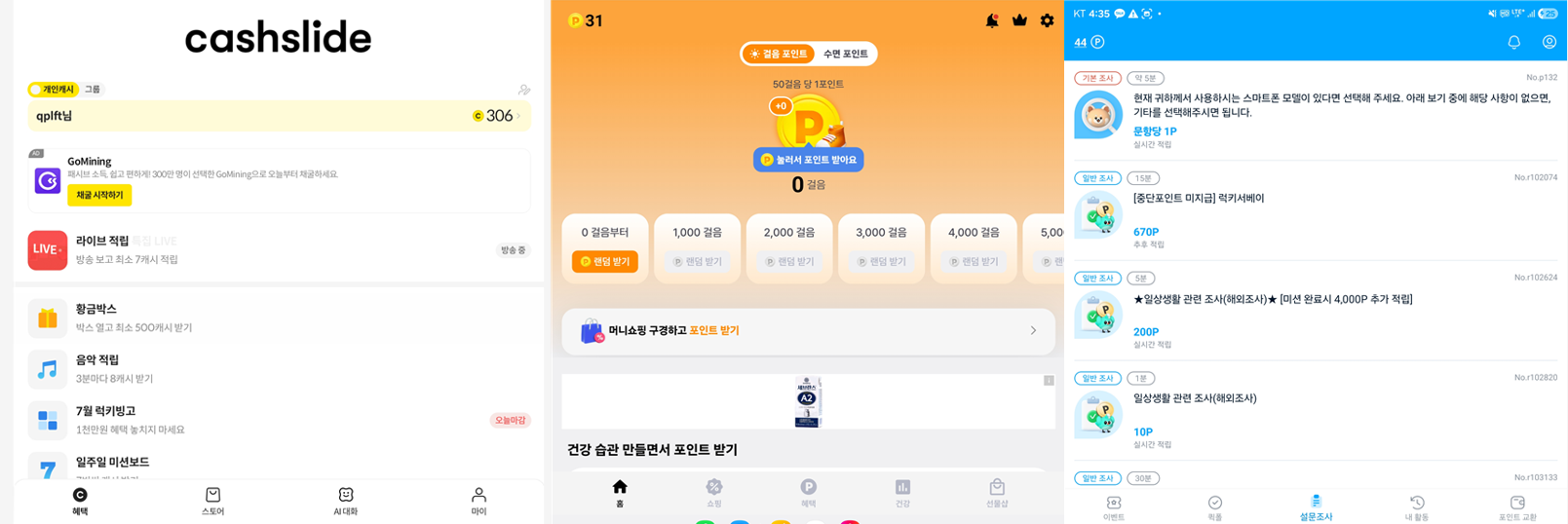 - 여러 앱을 병행 활용 – 캐시슬라이드, 머니워크, 패널나우를 동시에 활용해 포인트 수익 극대화