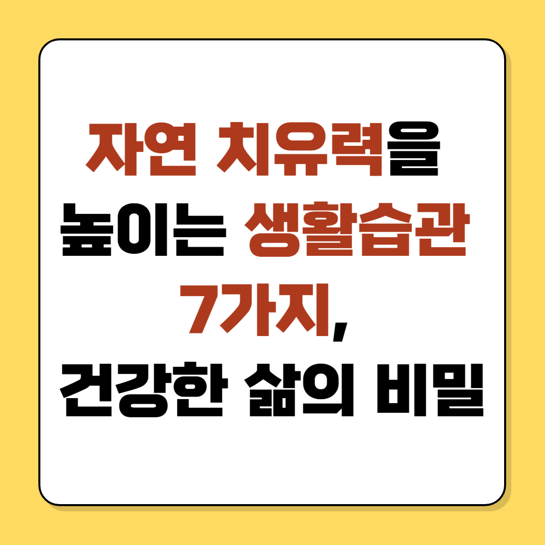 이번 글에서는 일상에서 실천할 수 있는 자연 치유력을 높이는 생활습관 7가지를 소개합니다. 몸과 마음을 건강하게 유지하며 삶의 질을 높이고 싶은 분들에게 꼭 필요한 정보입니다.