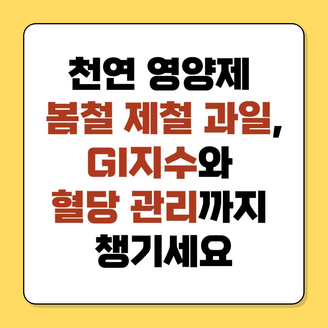 봄이 오면 자연은 우리에게 풍성한 제철 과일을 선물합니다. 이 과일들은 비타민과 미네랄, 그리고 항산화 성분이 풍부하여 천연 영양제로 불릴 만큼 건강에 유익합니다. 특히, 현대인에게 중요한 혈당 관리 측면에서도 제철 과일은 매우 좋은 선택이 될 수 있습니다. 과일마다 GI지수(Glycemic Index)가 다르기 때문에, 각 과일의 특성과 영양 성분을 잘 이해하고 섭취하면 건강을 더욱 효과적으로 챙길 수 있습니다.