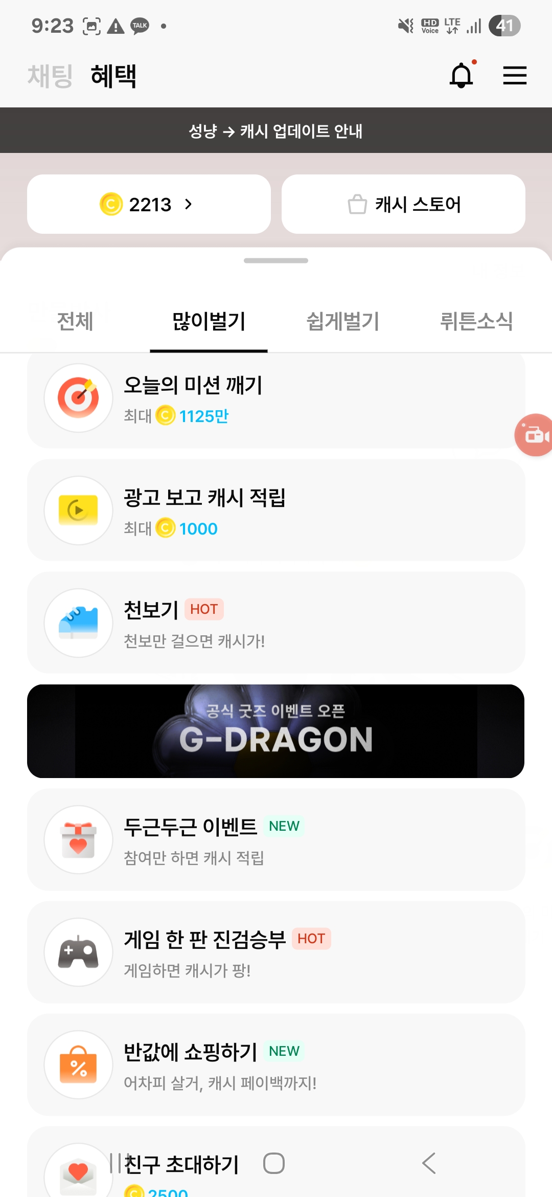 초대링크로 친구가 가입하면 2,500원 상당 캐시가 들어옵니다.